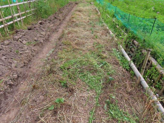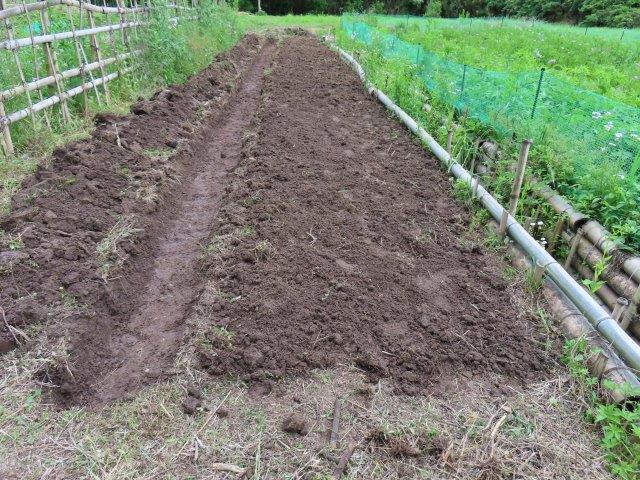 なんとか綺麗にしたので、真ん中に溝を作り高畝にする作業をしました。