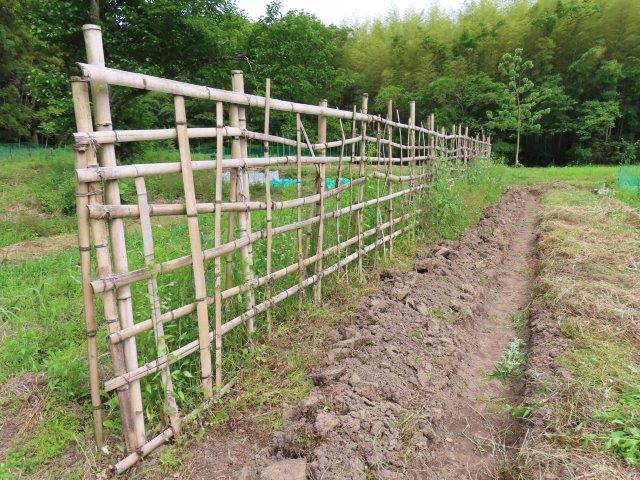 種子島紫さんが無事に植え終わった所で、ついでに昨年作った竹の支柱を半分壊す作業をしました。