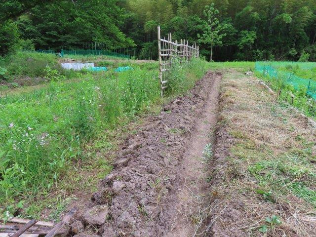 こちらの挿し穂を畑に斜めに挿していくのですが、畑の整備が間に合っていなかったので急いで作業しました。